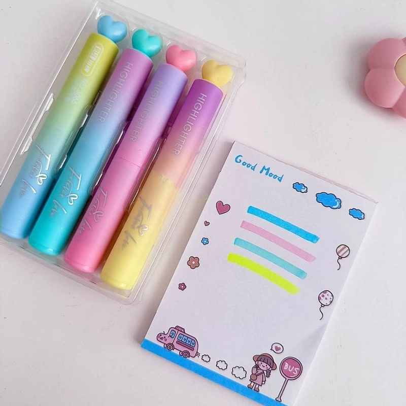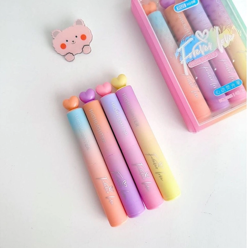 ست هایلایتر ۴ رنگ قلبی FOREVER LOVE با رنگهای شفاف و ملایم، انتخابی جذاب برای کسانی است که به یادداشتبرداری منظم و زیبا اهمیت میدهند.